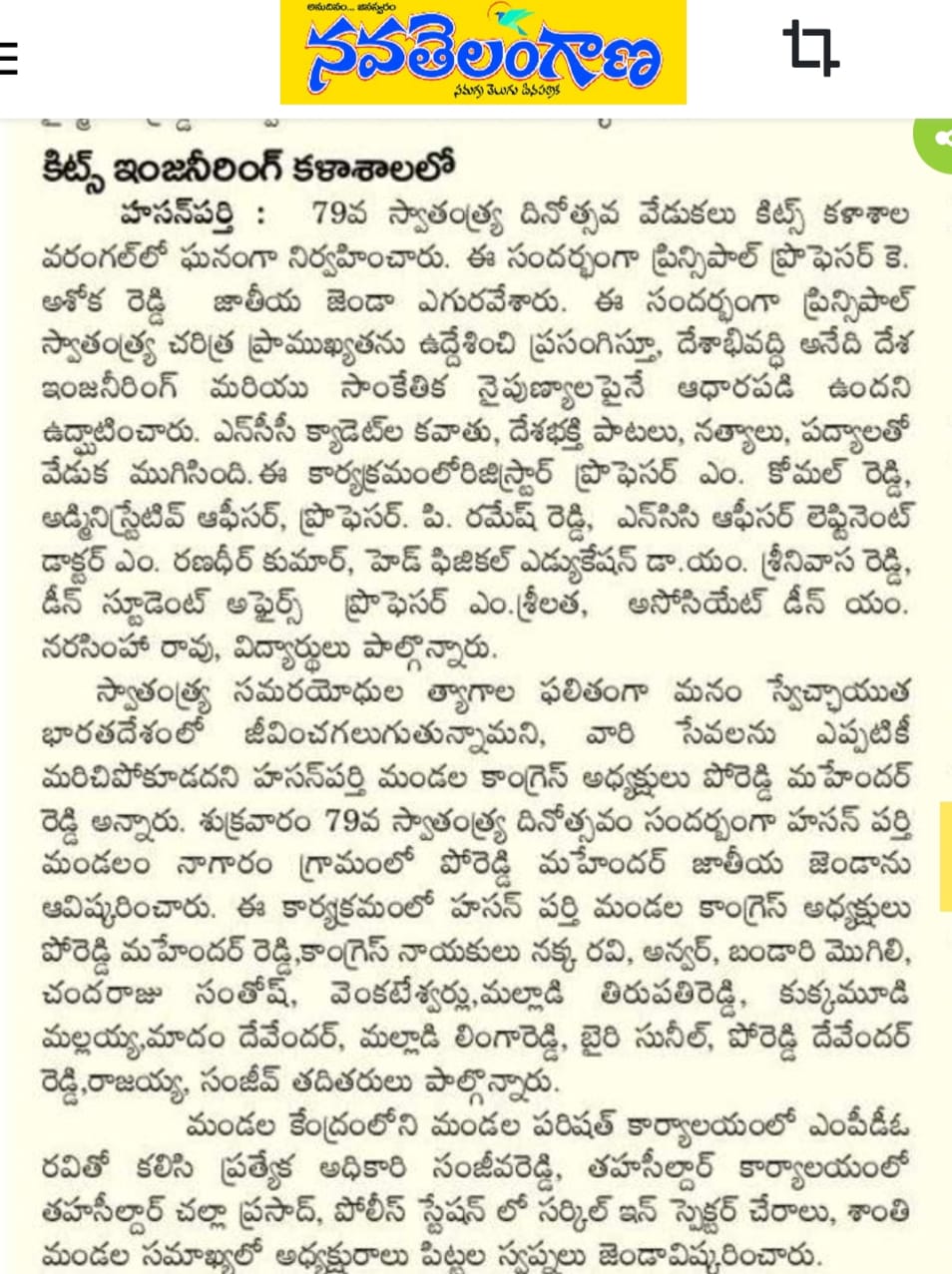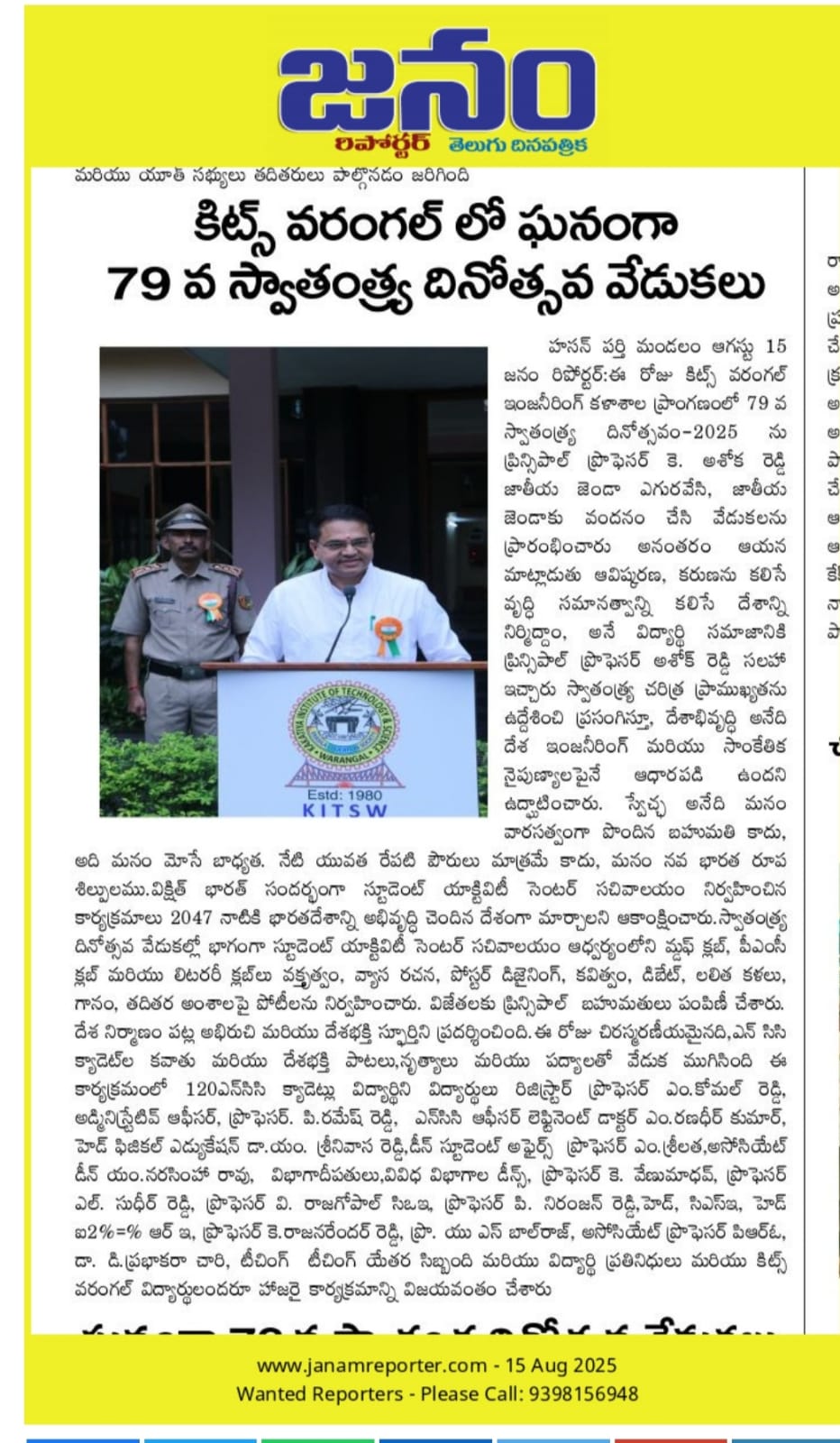 Grand Celebration of 79th Independence Day-2025 held at KITS, Warangal.