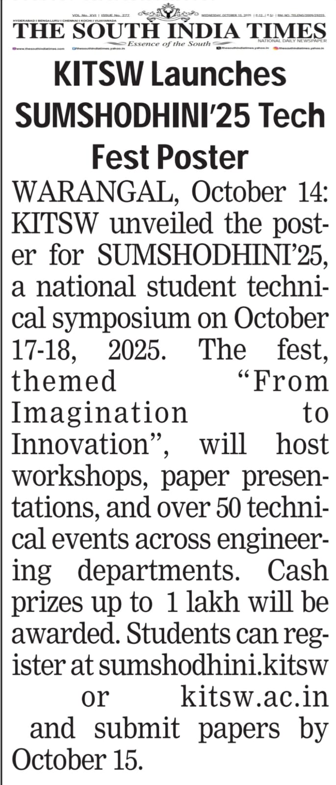 Kakatiya Institute of Technology and Science, Warangal Launches "SUMSHODHINI'25" a national level technical symposium poster.