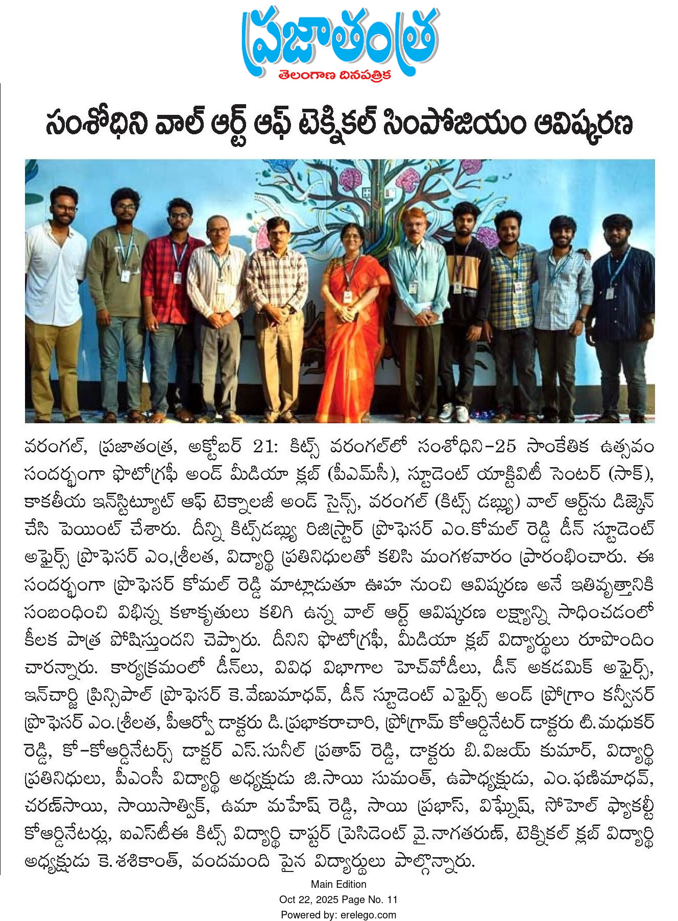 Unveiling Ceremony of Wall Art of national level technical symposium"SUMSHODHINI'25" held at @ KITSW.