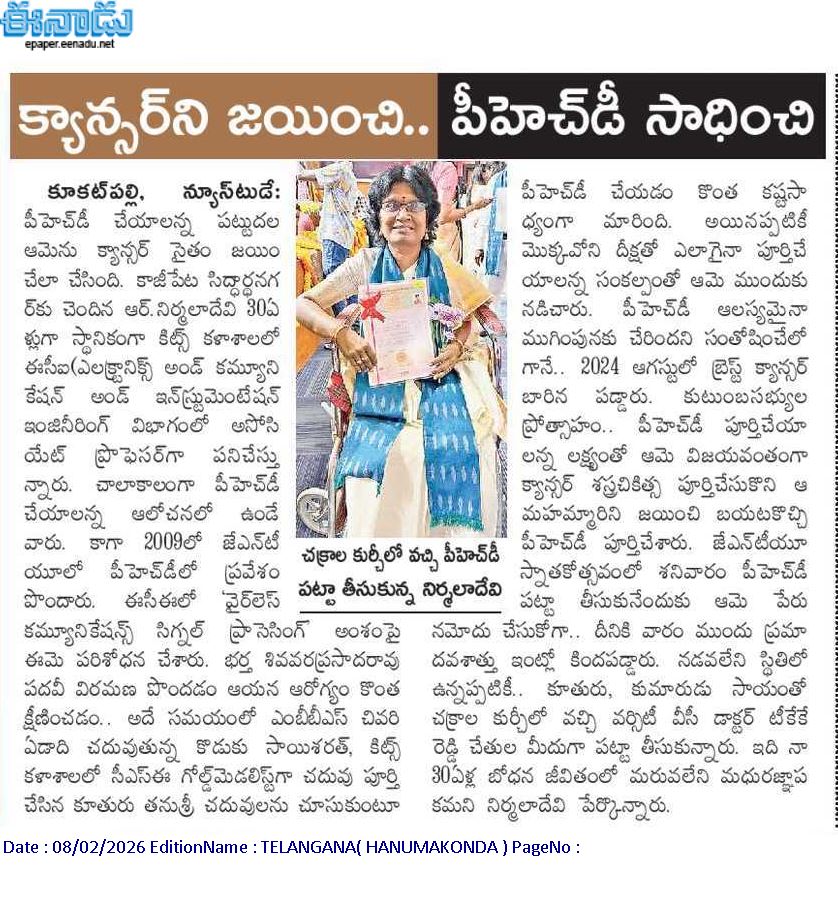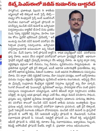 Dumpeti Naveen Kumar, Assistant Professor of CSE at KITS, Warangal has received his Ph.D from Osmania Uniersity.