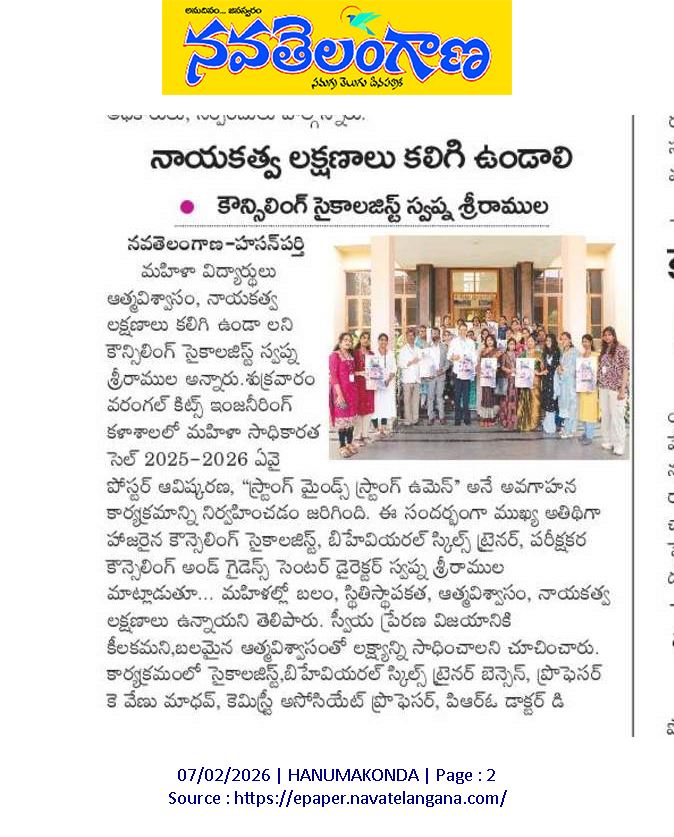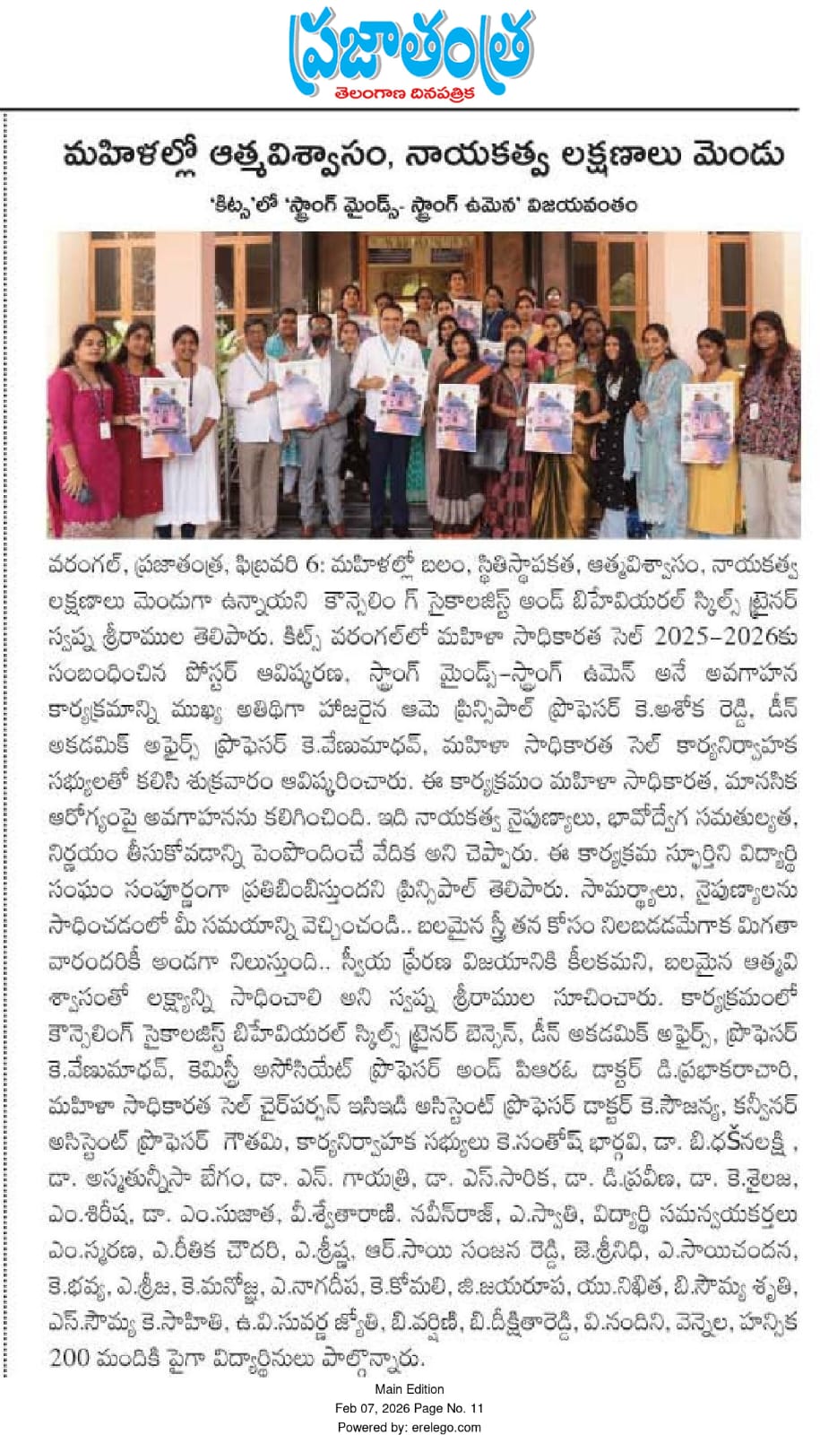 Women Empower Cell, KITS Warangal Organized awareness programme on "Strong Minda - Strong Women" on Friday 6th February, 2026 @ KITS, Warangal