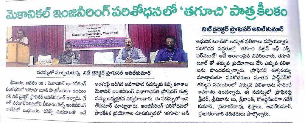 An awareness programme on "Research Methodology" is conducted by Dept. of Mechanical Engg. @ KITSW, 08.01.2019