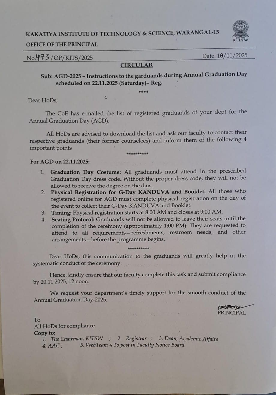 Instructions to graduands during AGD scheduled on 22.11.2025