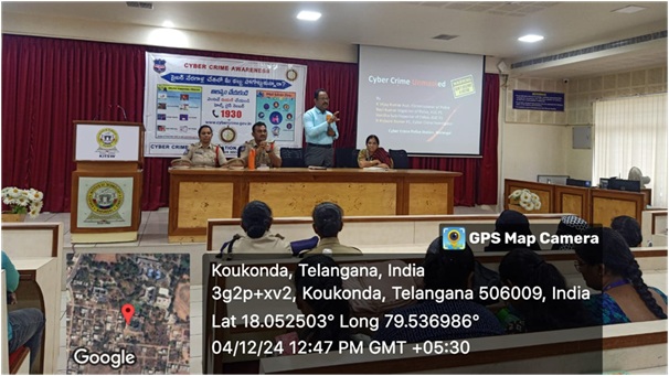 Sri K. Vijay Kumar, ACP, Cyber Crimes addressing the students on the eve of Cyber Crimes Awareness Programme held on December 04, 2024 |