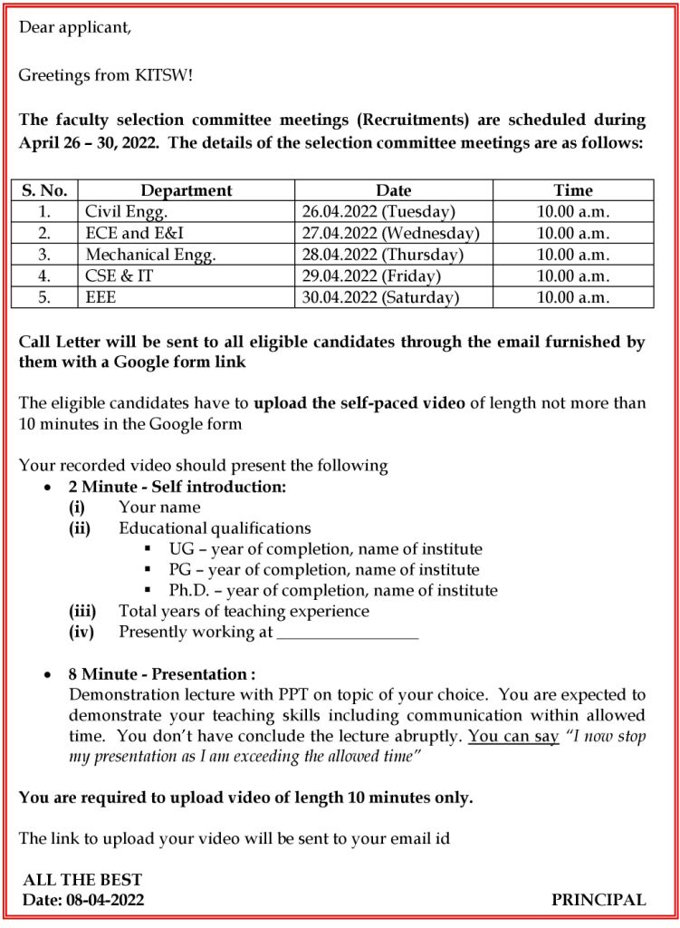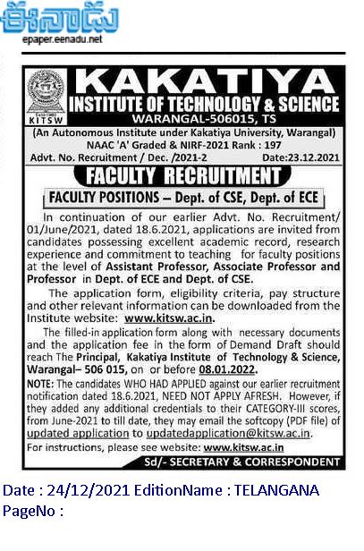 RECRUITMENT NOTIFICATION - DECEMBER, 2021