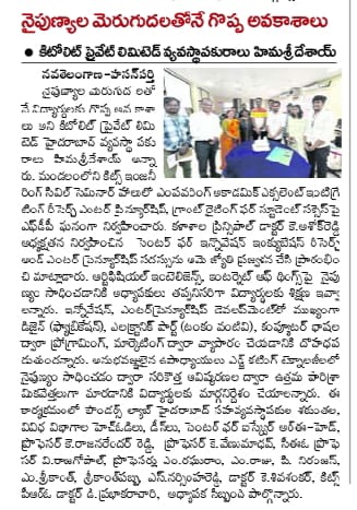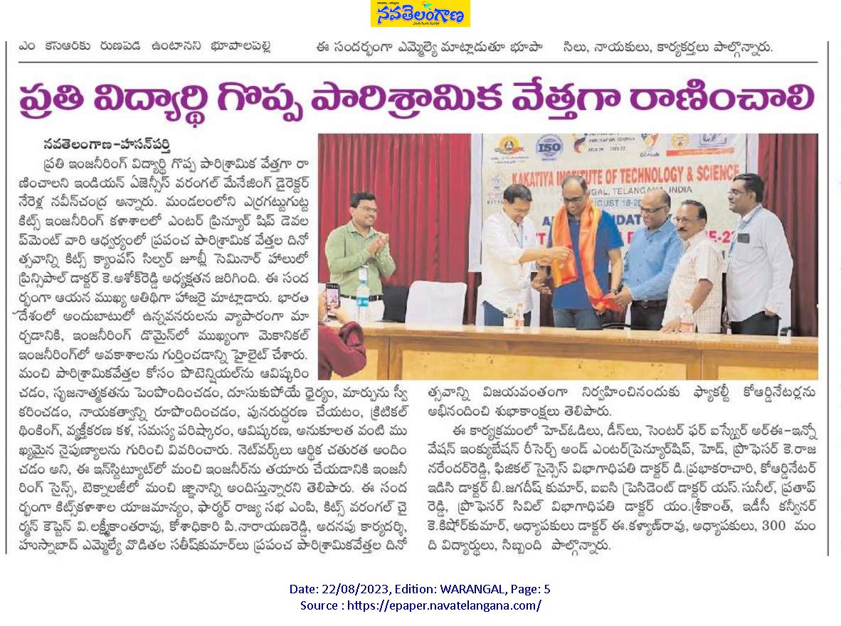 B.Tech. I year student induction programme concludes @ KITS, Warangal