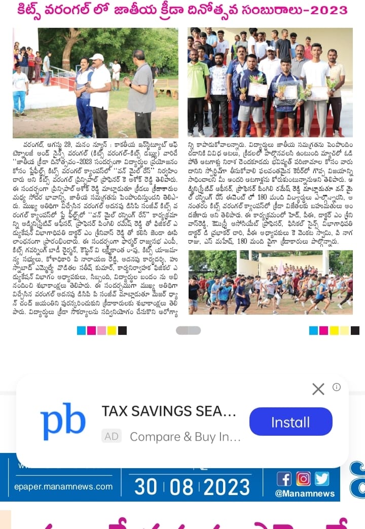 National Sports Day is celebrated on August 29, 2023 @ KITS, Warangal