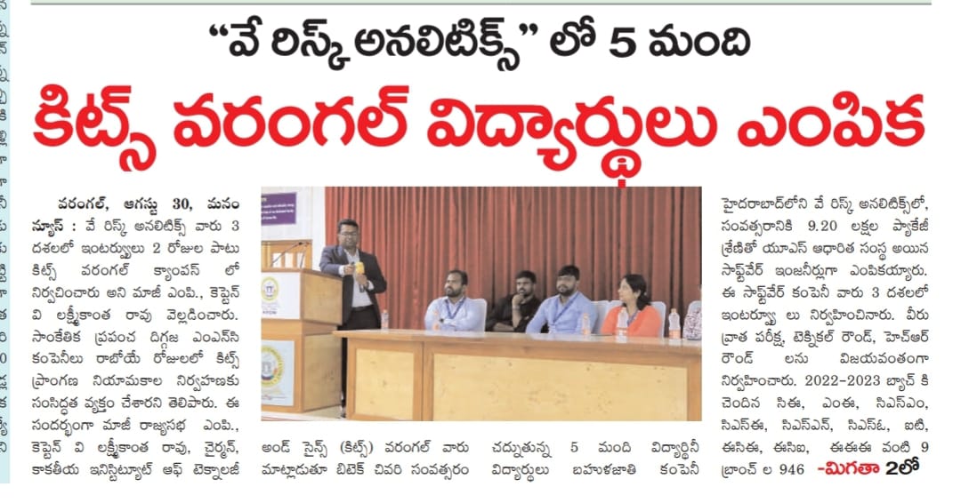 US-based Verisk Analytics hired 5 final year B.Tech students in a campus placement drive@ KITS, Warangal