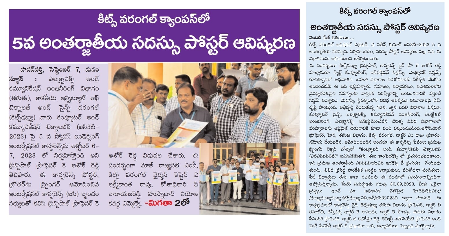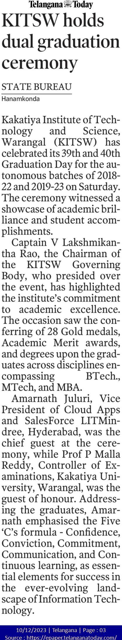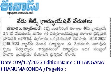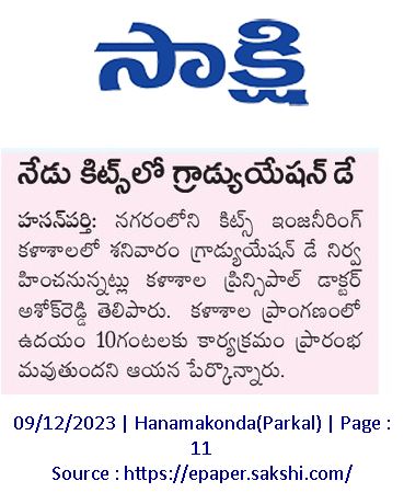 KITS, Warangal was celebrated its 39th and 40th Graduation Day for the Autonomous batches of 2018-22 and 2019-23 on 9th December, 2023.