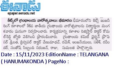 Central Library, KITSW organised a book exhibition on the eve of National Library Week celabrations from 14th to 20th November, 2023 @ KITS, Warangal