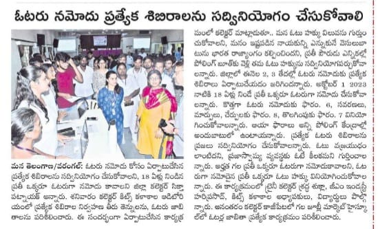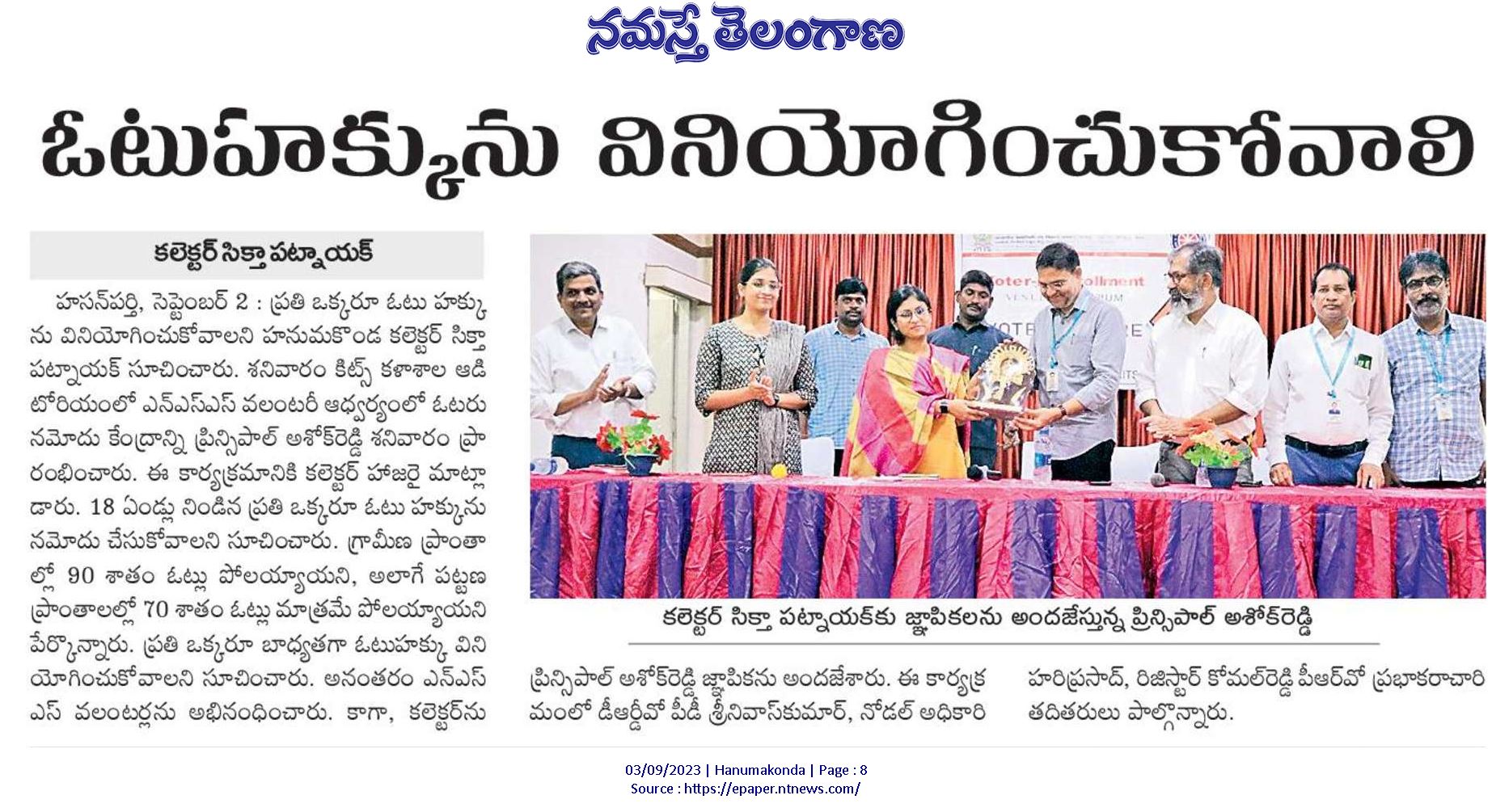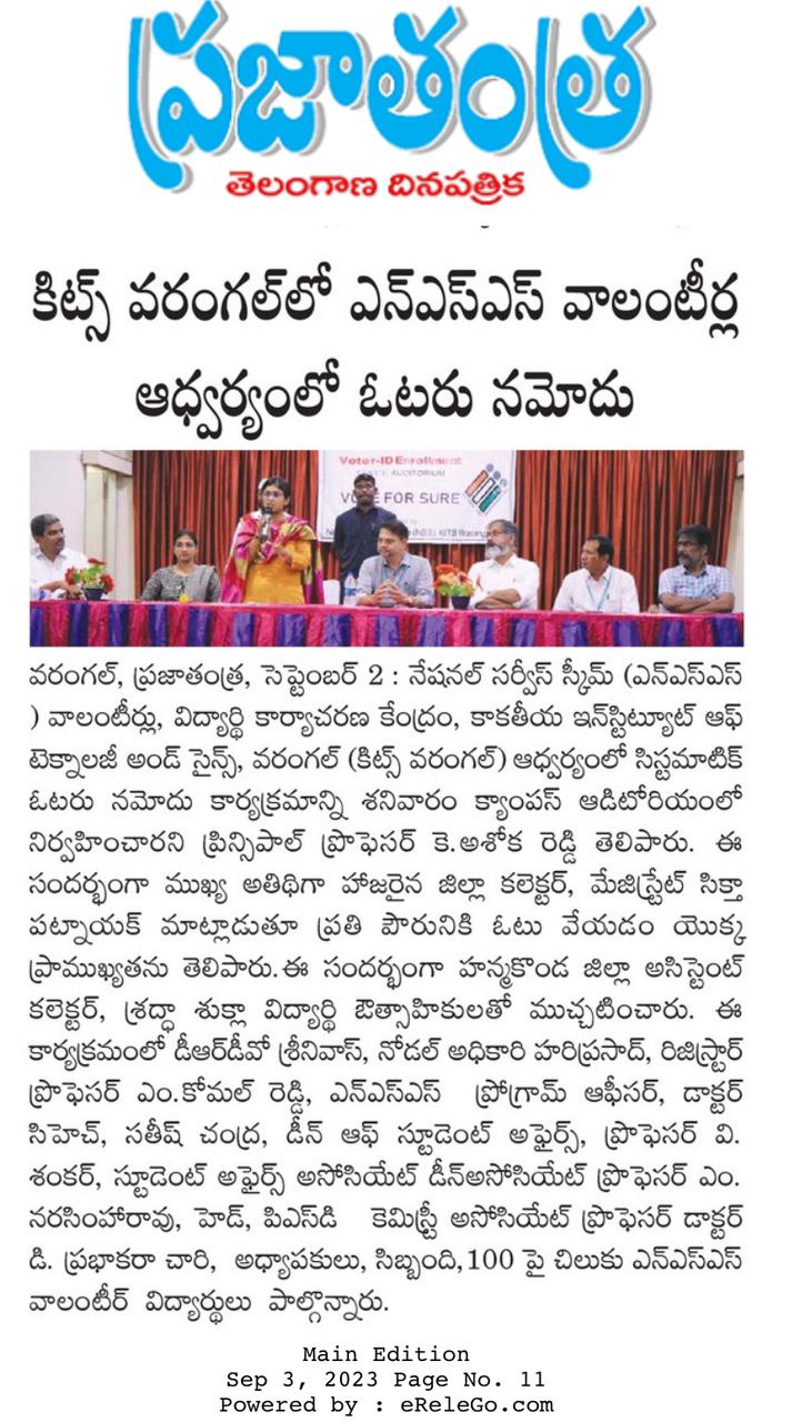 NSS Club, KITSW organized Voter ID enrollment drive on 2nd September, 2023 @ KITS, Warangal