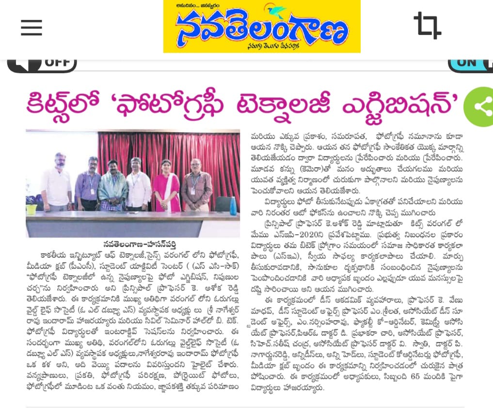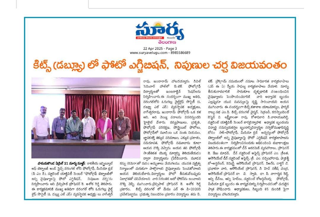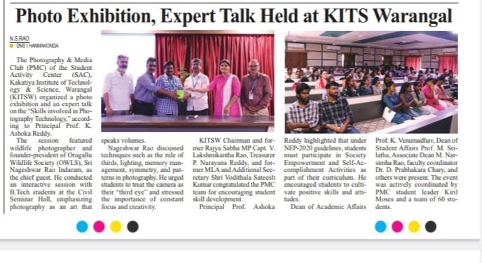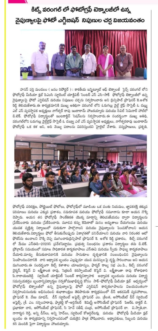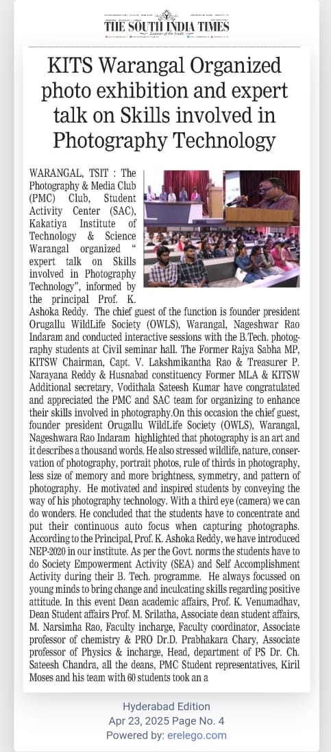 KITS, Warangal organised photo exhibition and expert talk on skills involved in Photography Technology on 22nd April, 2025.