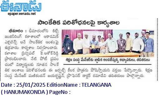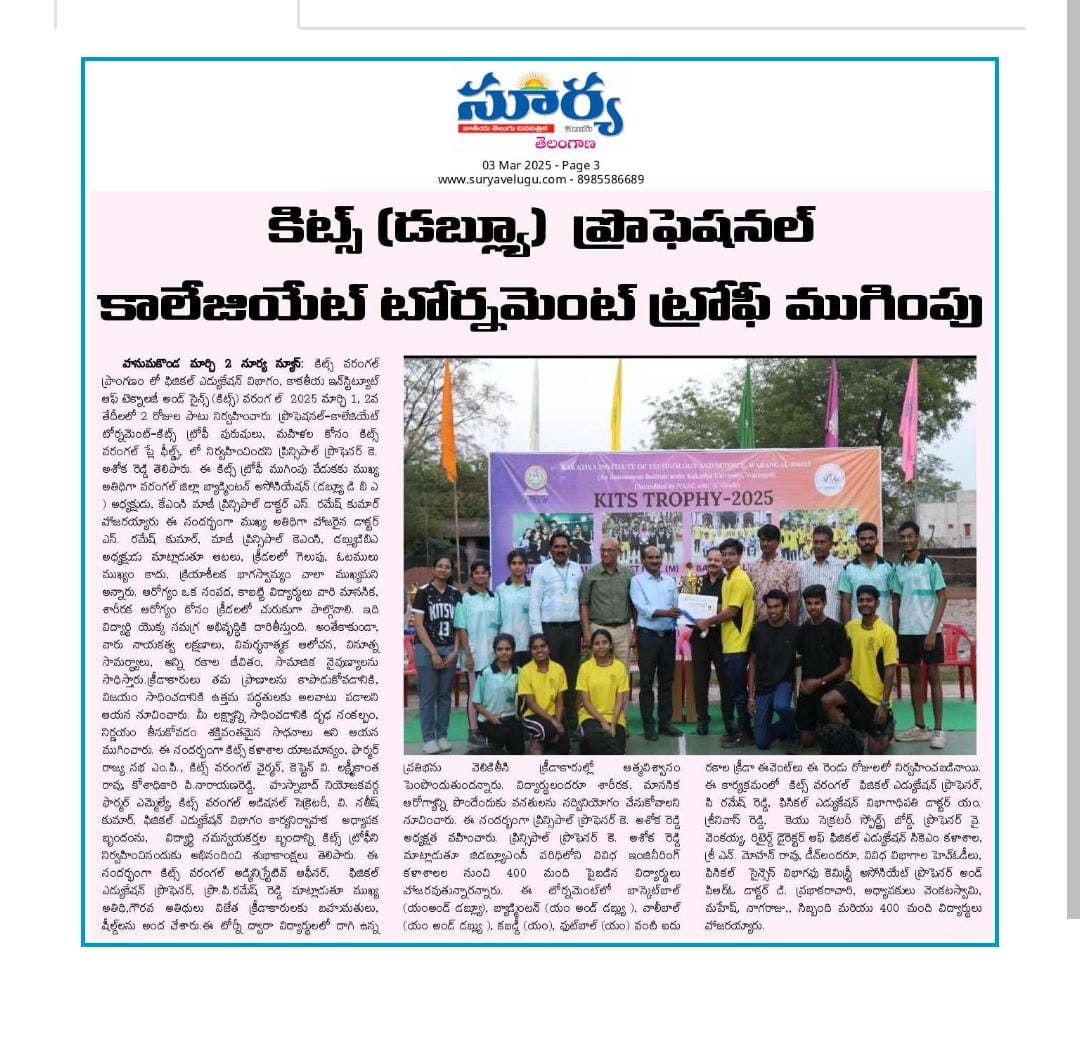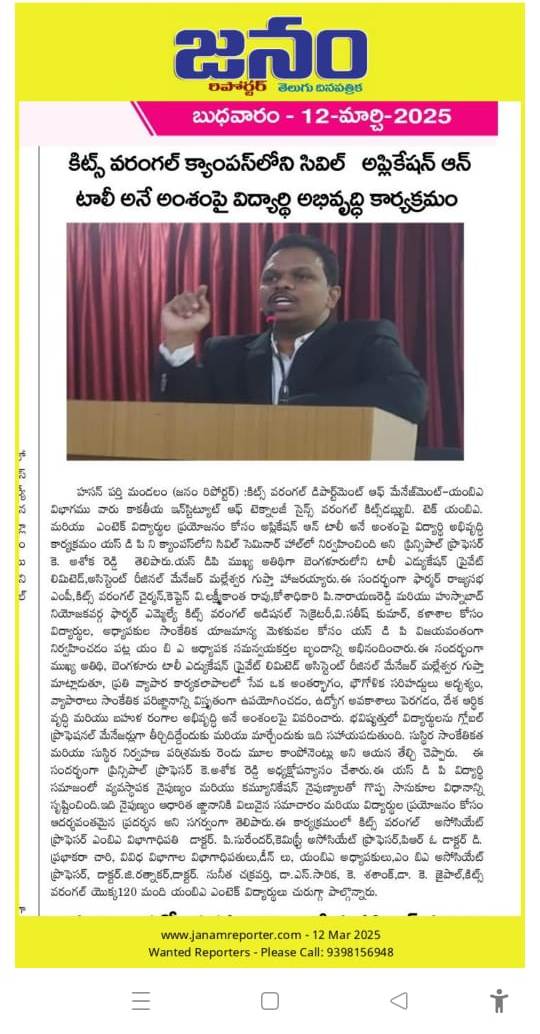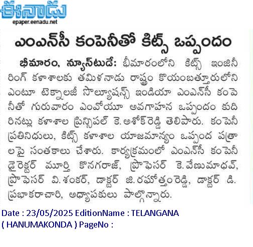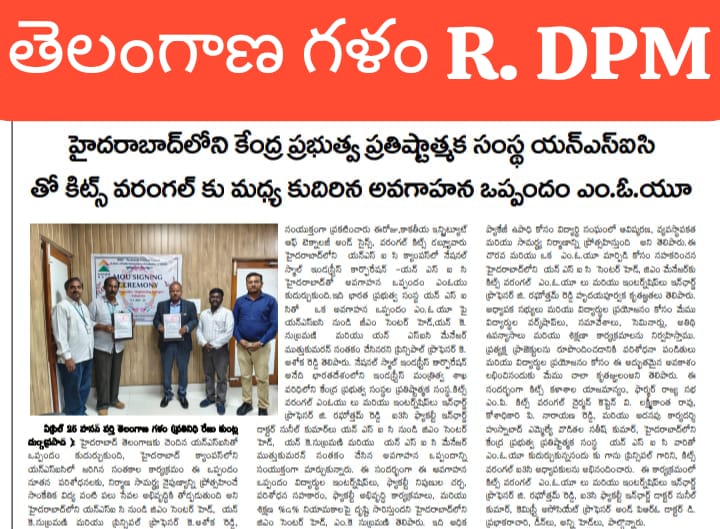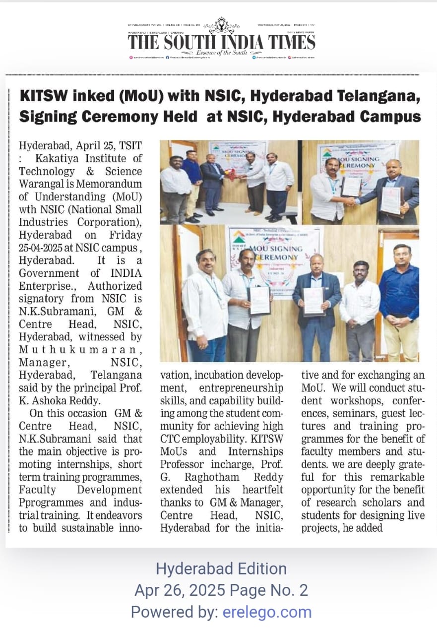 KITS, Warangal is Memorandum of Understanding(MoU) with National Small Industries Corporation(NSIC), Hyderabad on 25th April, 2025 at NSIC campus, Hyderabad.