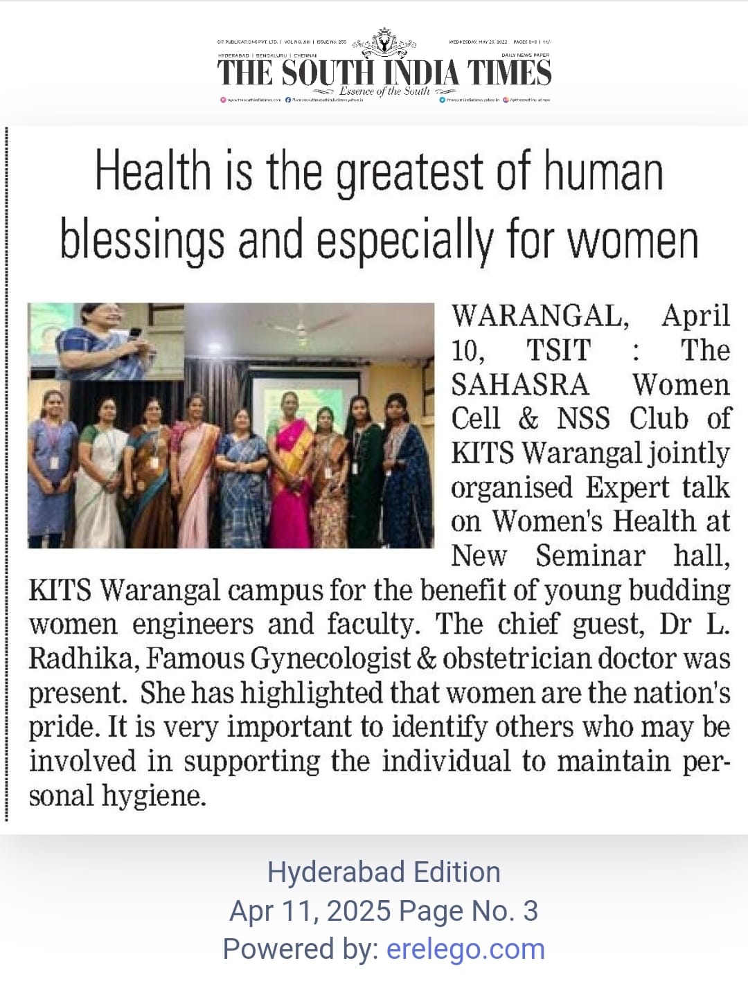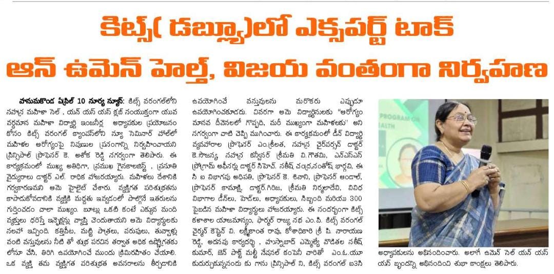 The SAHASRA Women Cell & NSS Club jointly organised Expert Talk on "Women's Health" @ KITSW.