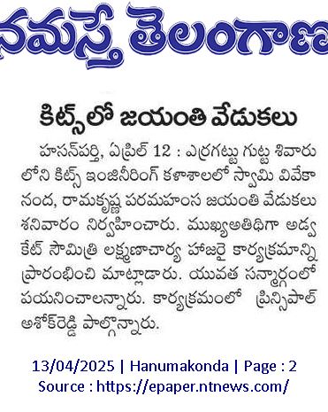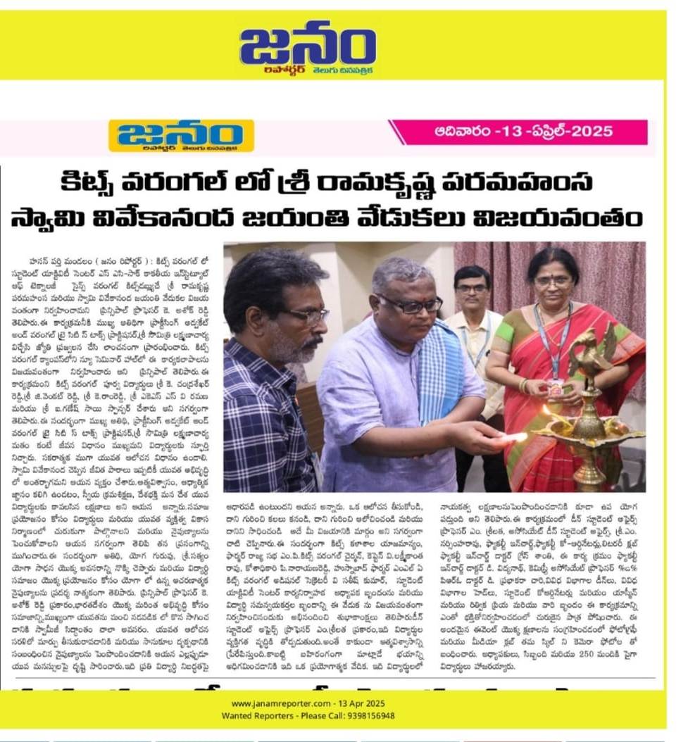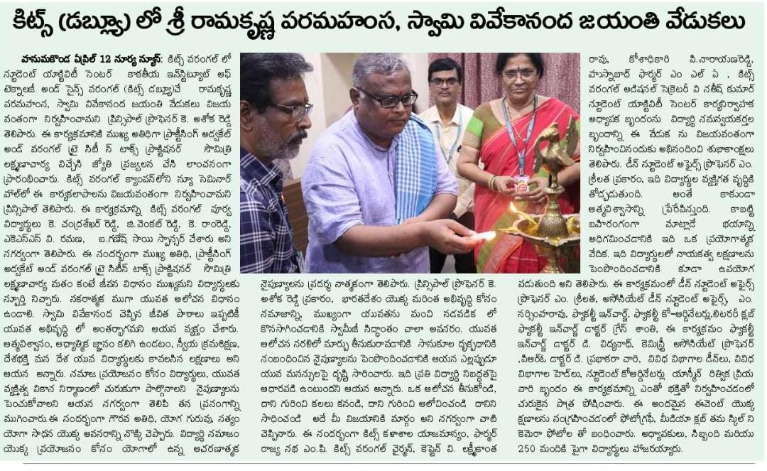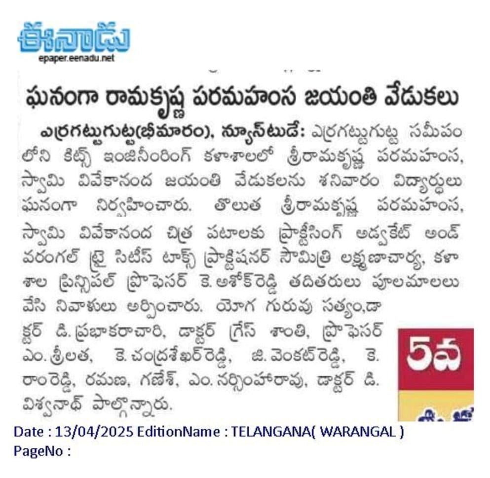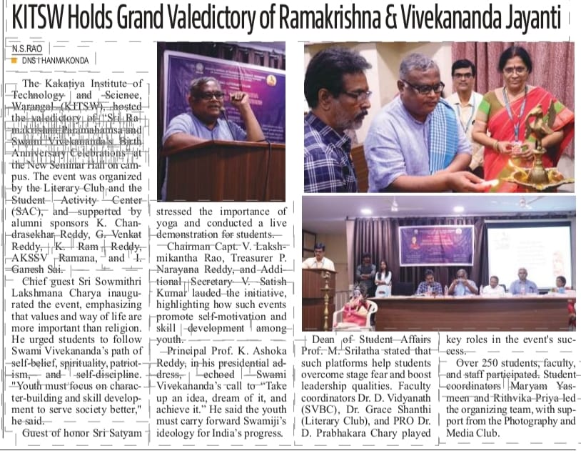 KITS, Warangal organised Valedictory of Sri Rama Krishna Pramahamsa and Swami Vivekananda's Birth Anniversary celebrations on 12th April, 2025.