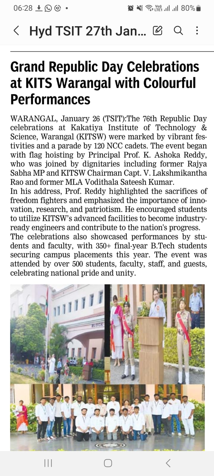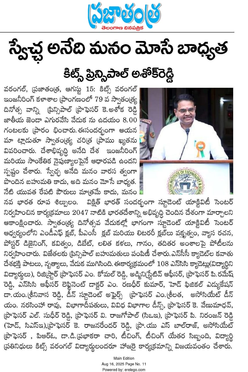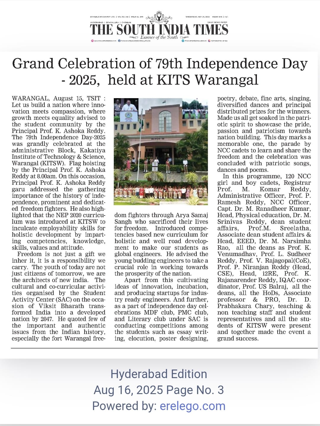 Grand Celebration of 79th Independence Day-2025 held at KITS, Warangal.