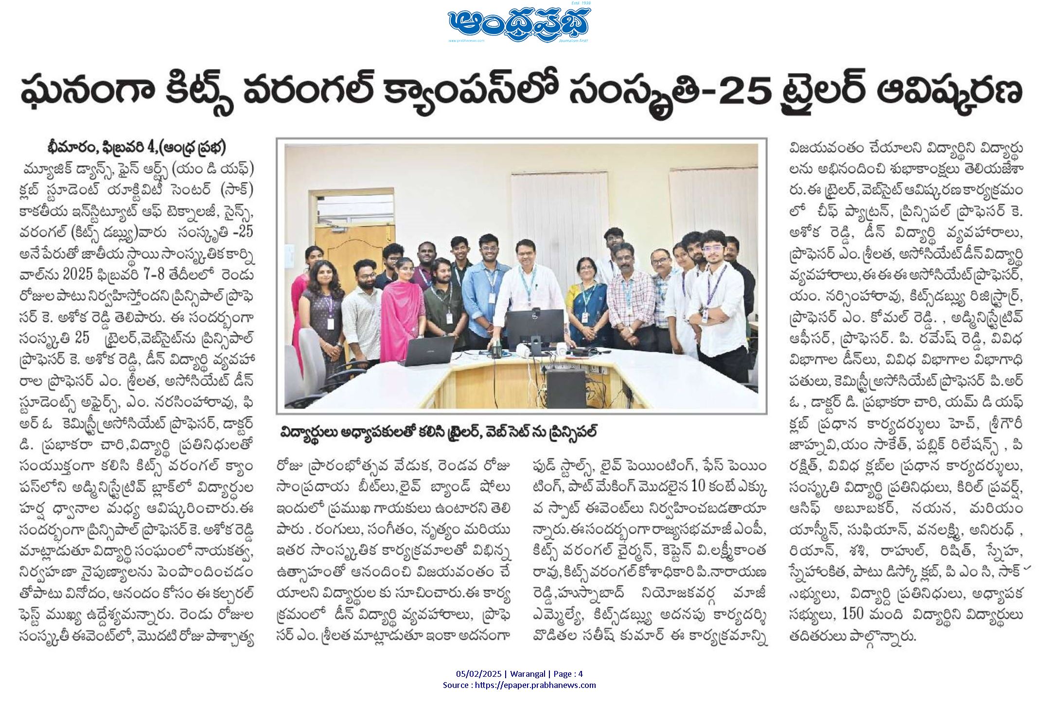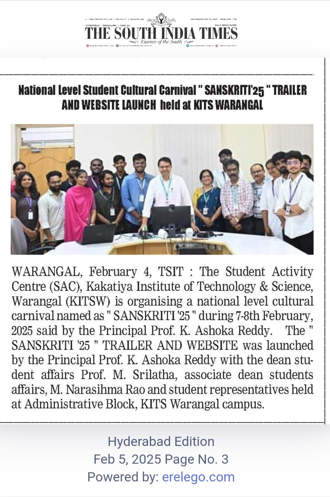 National Level Srudent Cultural Carnival "SANSKRITI'25" trailer and website lanched on 5th February, 2025 @ KITSW