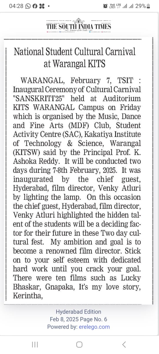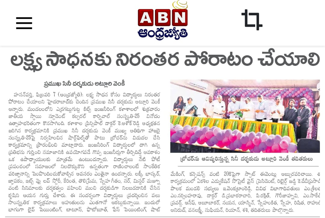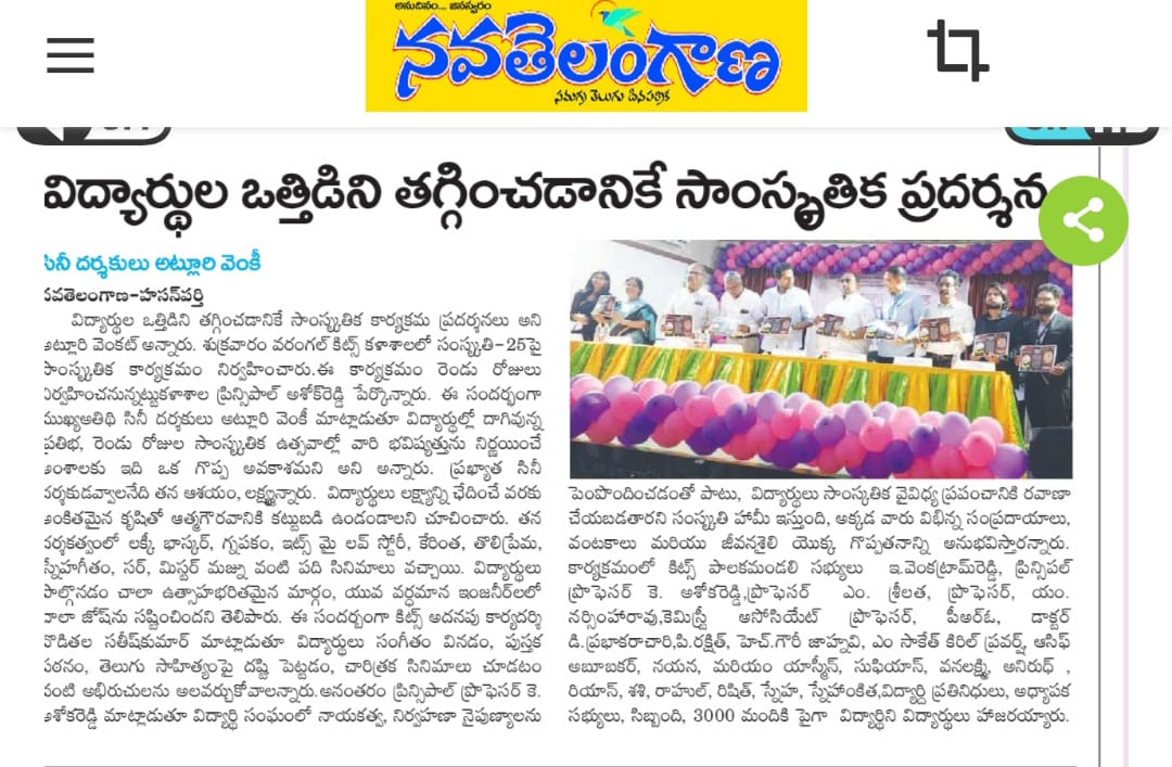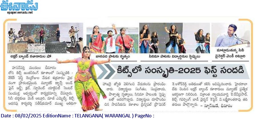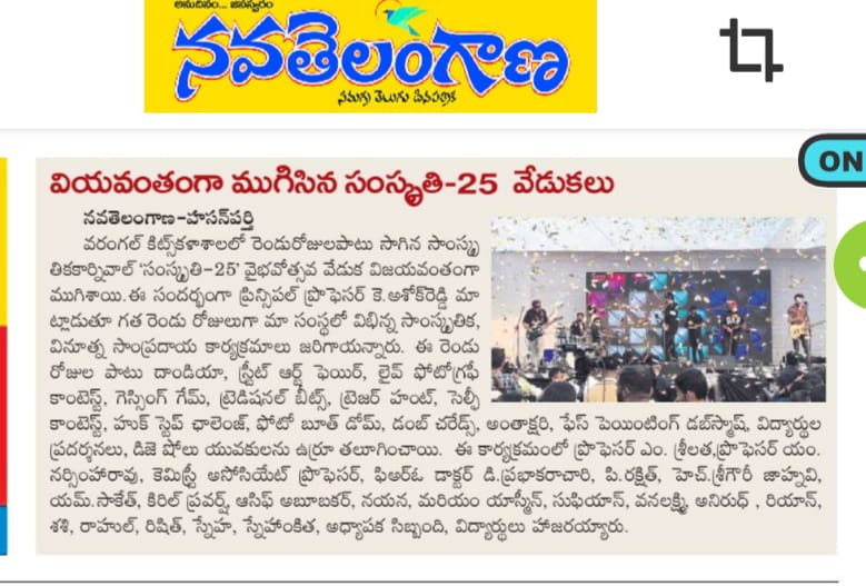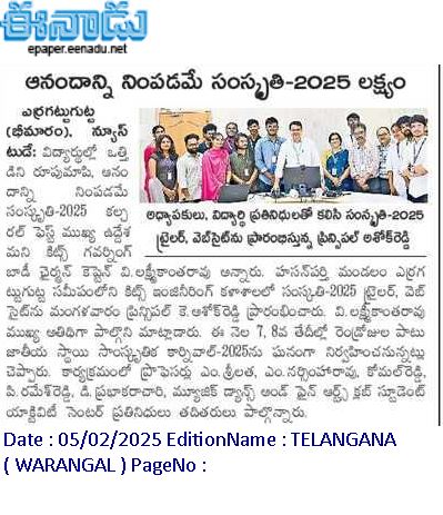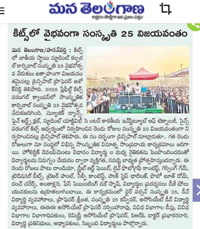 Inaugural Ceremony of Cultural Carnival "SANSKRITI'25" held on 7th February @ Auditorium, KITS, Warangal.