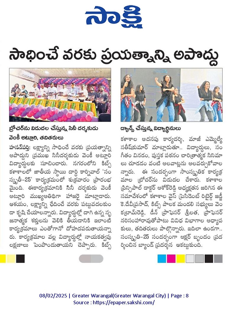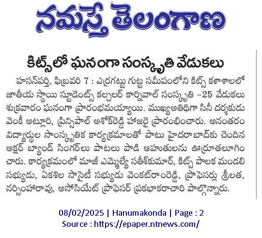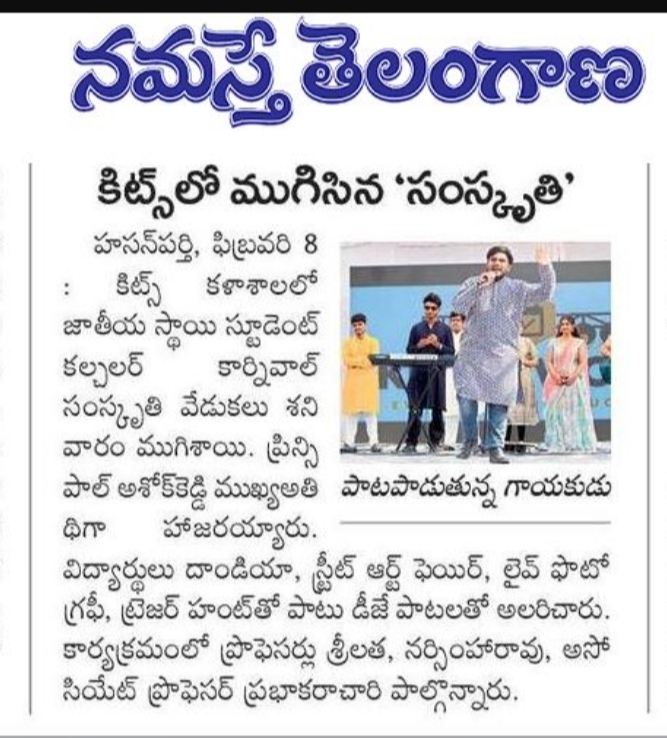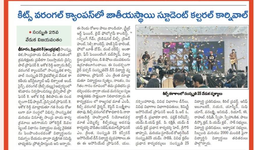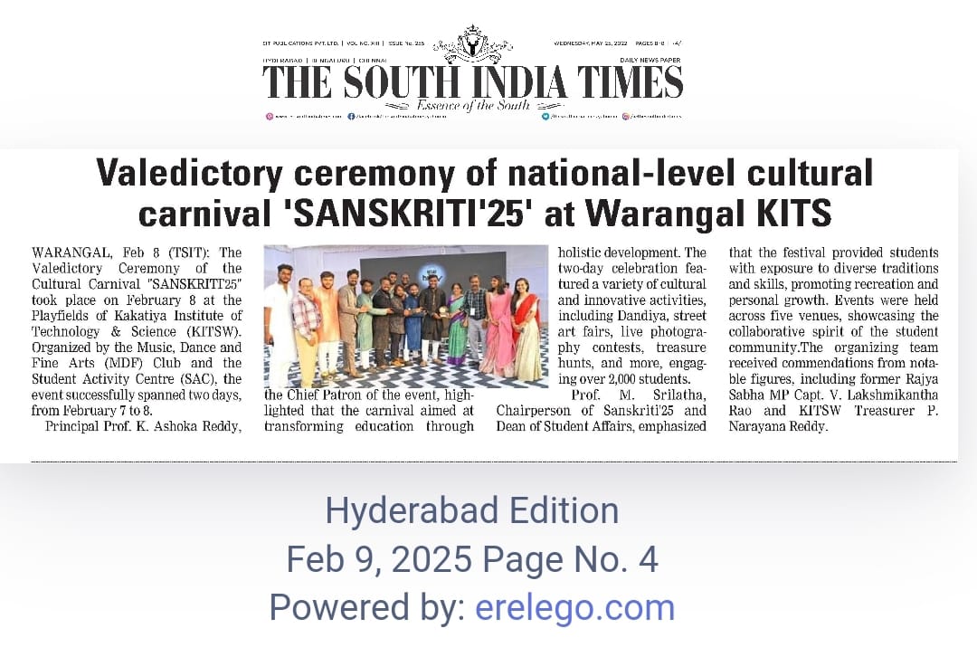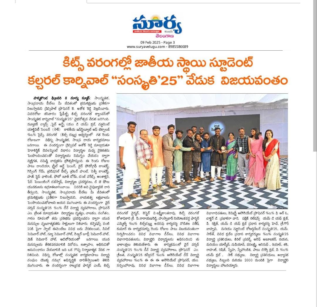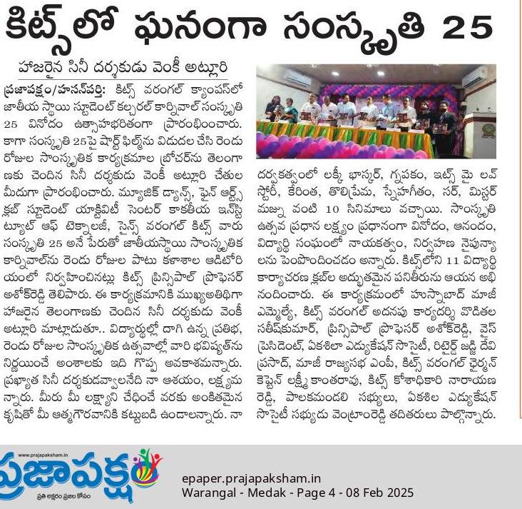 Valedictory Ceremony of Natioanl Level Cultural Carnival "SANSKRITI'25" held on 8th February @ KITS, Warangal.