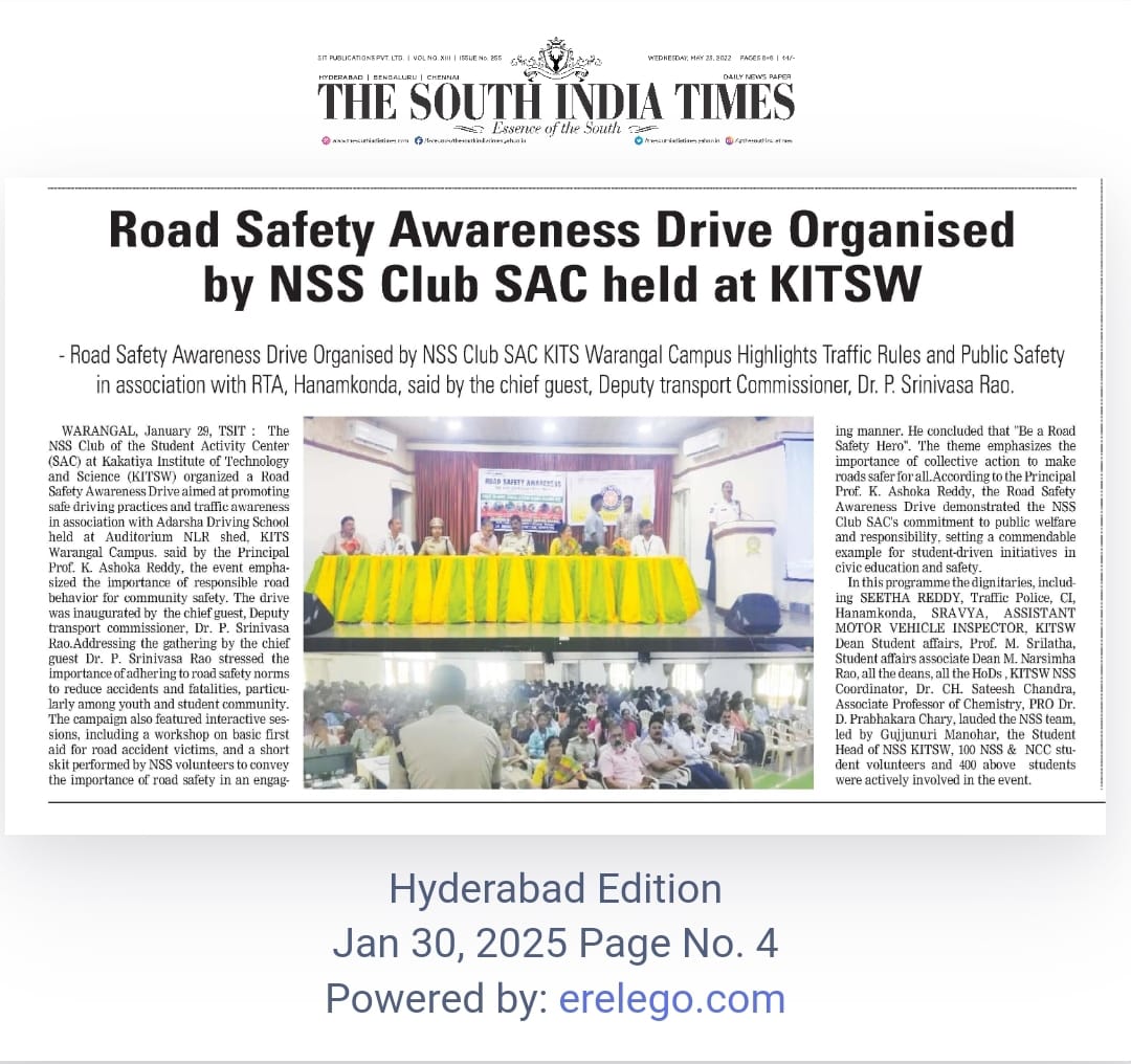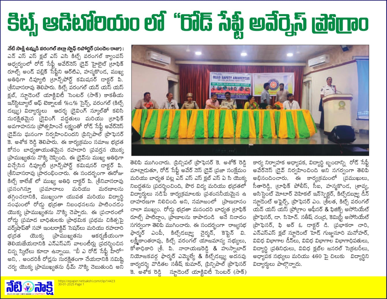 Road Safety Awareness Drive organised by NSS Club, SAC held on 29th January, 2025 @Auditorium, KITSW