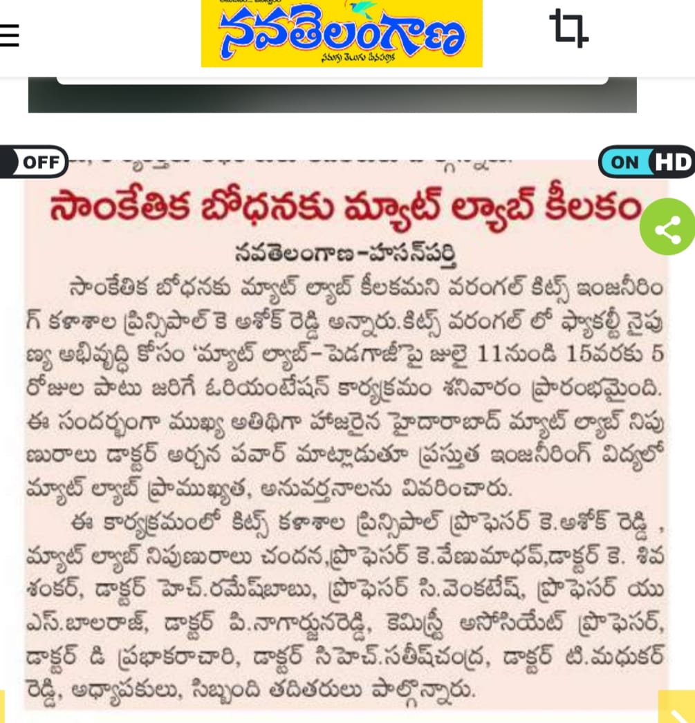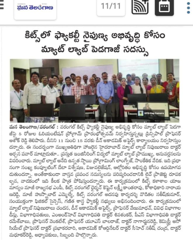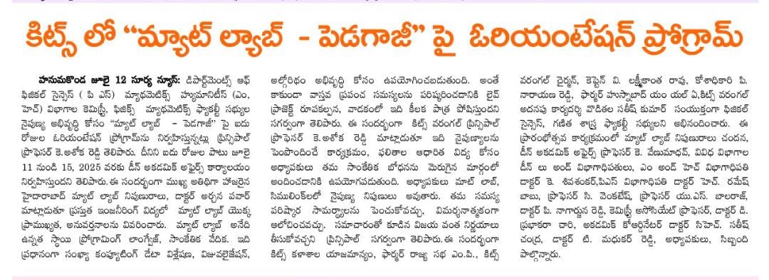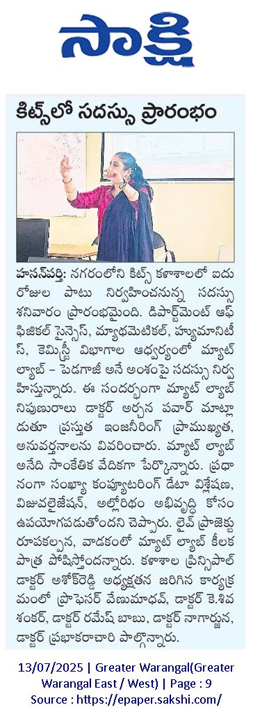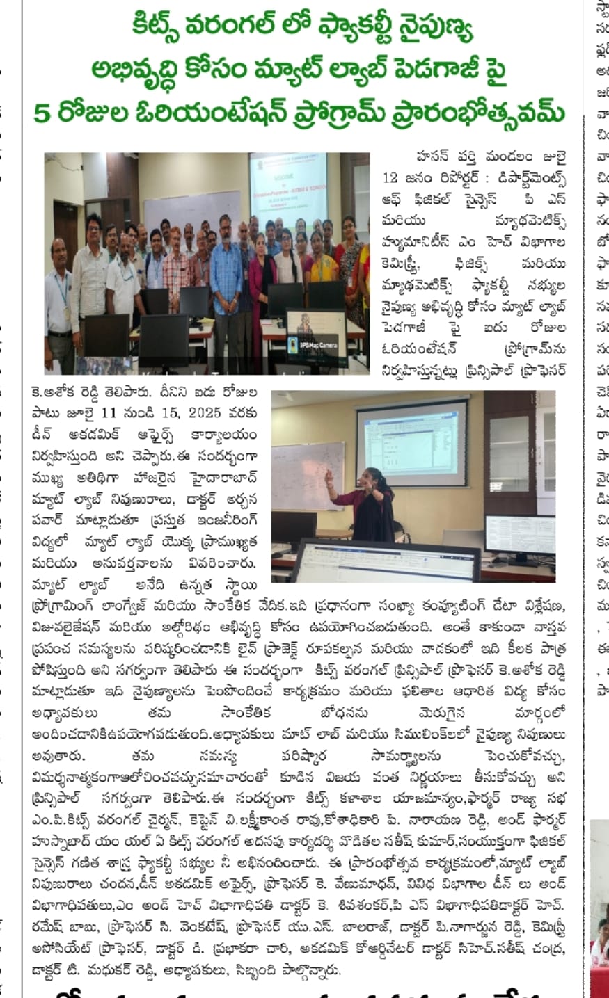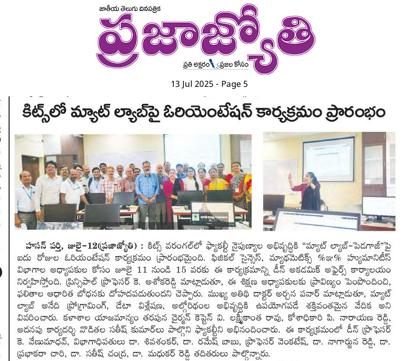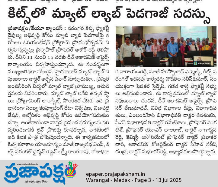 KITS, Warangal organised a 5 day Faculty Development Programme on "MATLAB Pedagogy" during 11 - 15 July, 2025.