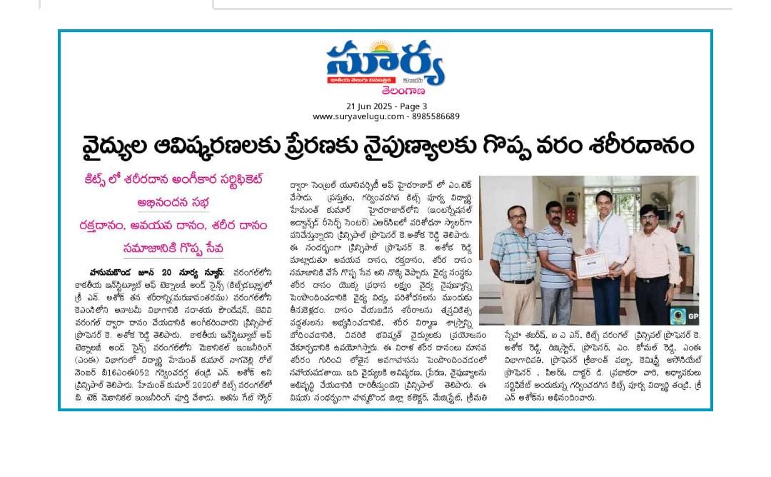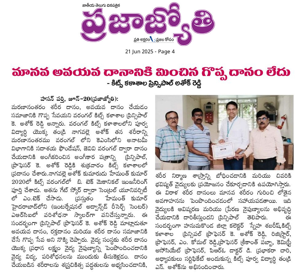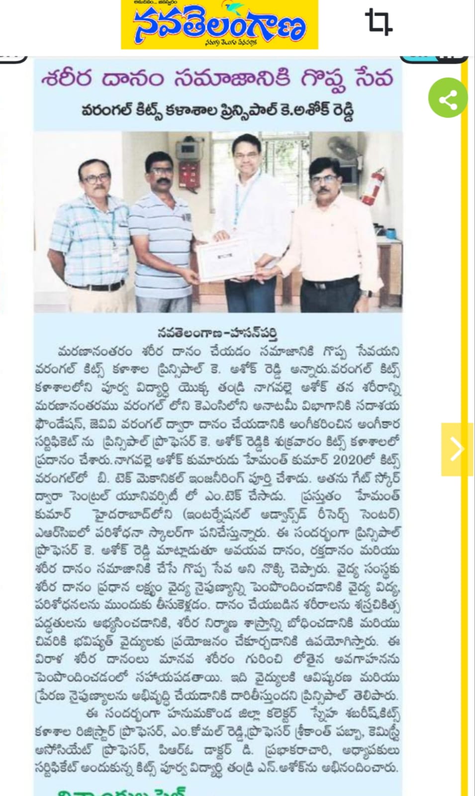 Body Donation after death is the greatest service for the society held at KITS, Warangal.