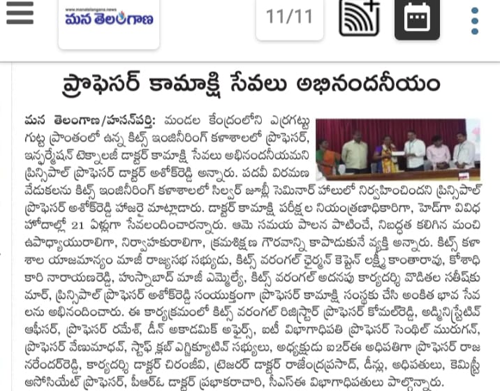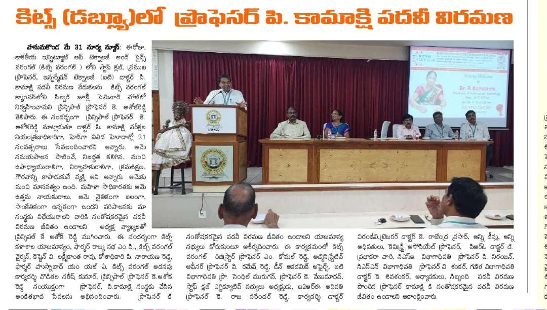 Superannuation celebrations of Dr. P.Kamakshi, Professor of Information Technology held on 31st may, 2025 @ KITS, Warangal.