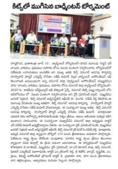 Grand Valedictory of Warangal District Badminton Tournament(WDBT-2025) for boys, girls, men and womens held during 9 - 10 June, 2025 @ KITS, Warangal.