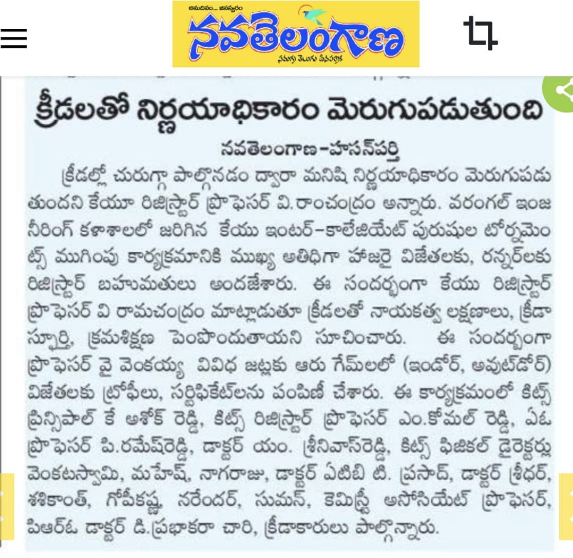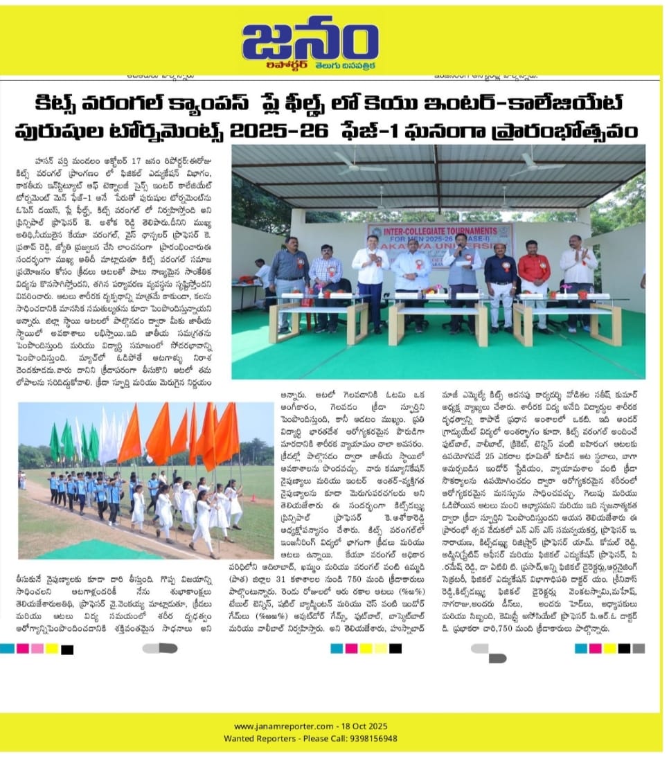 Kakatiya Institute of Technology and Science, Warangal hosts "Inter-Coolegiate Tournaments for Men 2025-26" held during 17-18 October, 2025.