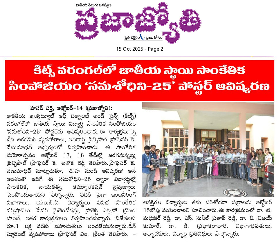 Kakatiya Institute of Technology and Science, Warangal Launches "SUMSHODHINI'25" a national level technical symposium poster.