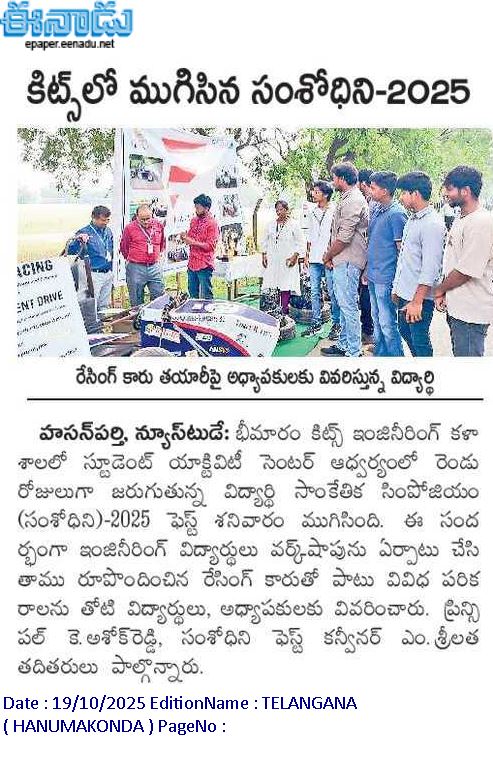 Kakatiya Institute of Technology and Science, Warangal hosts the valedictory ceremony of national level technical symposium"SUMSHODHINI'25" on 18th October, 2025.