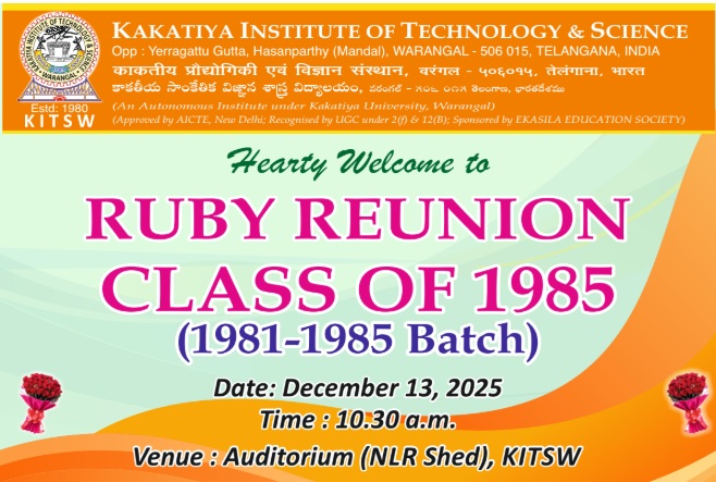 "42nd Graduation Day | 22-11-2025 | Kakatiya Institute of Technology and Science,Warangal" Click Here for Live Streaming Link "IMPORTANT NOTICE For Course Completed Students and Detained Students (Due to backlogs) only": Examination Fee Notification for One-Time Make-up chance for MSE (OTM-MSE) improvement in the courses failed due to low MSE marks.